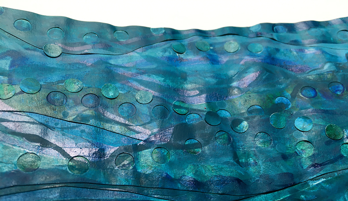All those layers of wet paint and collage gave the whole piece a pleasingly wiggly rippled surface to echo the waves.
