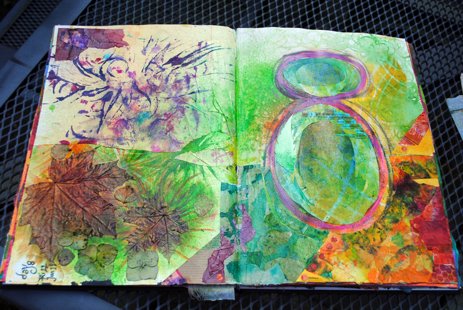 Day 9 is built up in layers of dyed paper and stencilled experimental gessoed tissue paper.