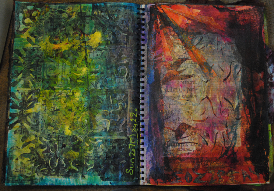 When I was doing the paper dying thing I was using future pages of sketchbook to catch the drips.