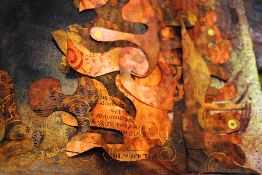 As the colors warmed up, it seemed to be wanting some gold. Metallic card stuck to the back of the page shines through.