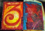 Day 9 is built up in layers of dyed paper and stencilled experimental gessoed tissue paper.