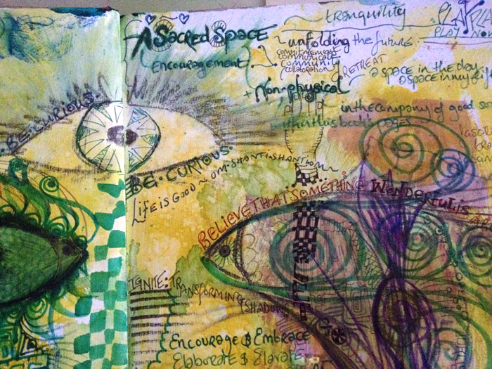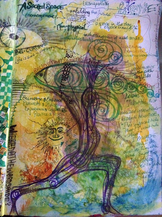 This sentence appeared in my world – loud and timely enough for it to become what  this page is based around. Loud, Bold Lettering – which some weeks gets covered up – not this week.  The organising committee in my mind had other plans, and only allowed the doodles to skirt the edges. To enhance not to obliterate. Ok….I thought….Ok. You trying to tell me something here?