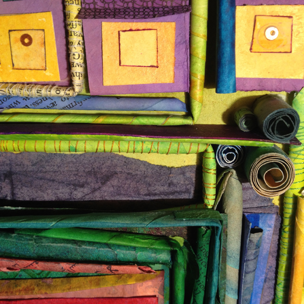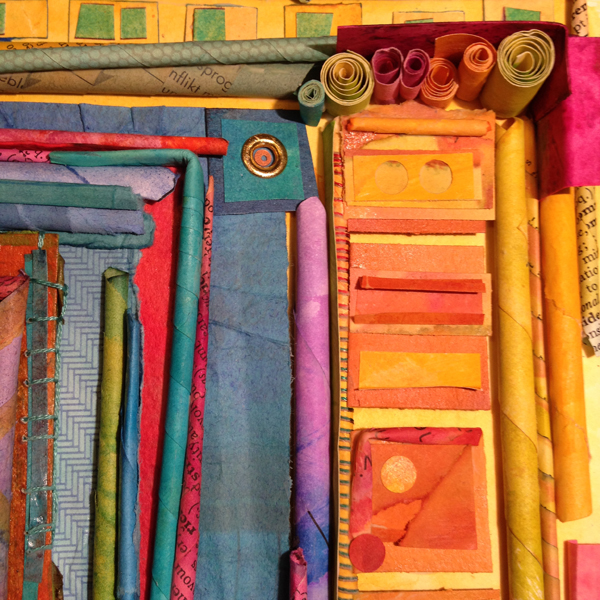Thoughtforms are a series of relief collages I’m making from the dyed paper (way back… remember the dyed paper?)