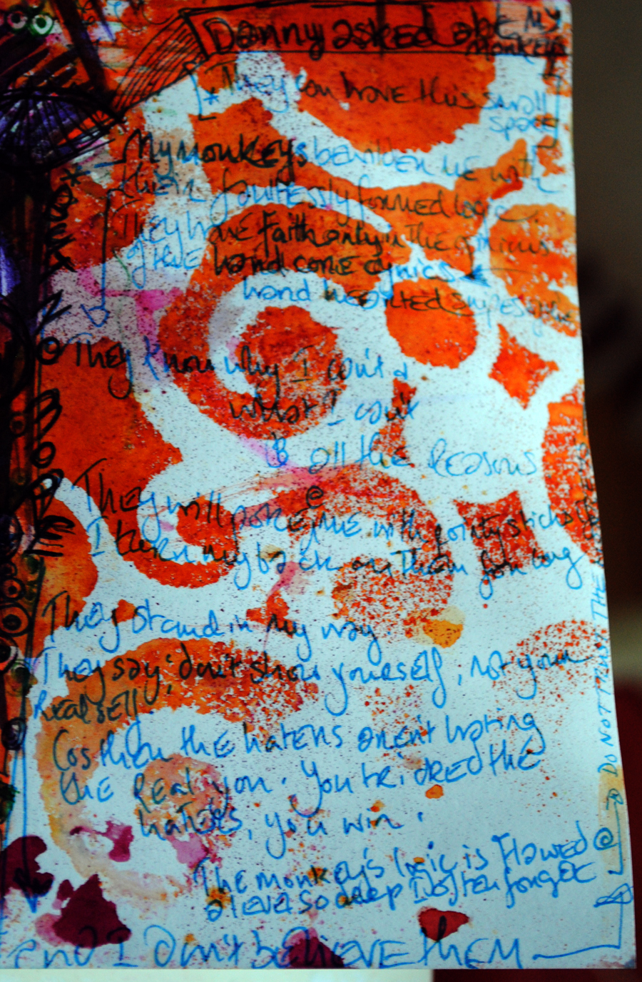 I dedicated a corner of a page to the Monkeys (they were chief trouser-wearers and direction-choosers in my life for way too long. They get a corner to play in now. I get the rest of the page. That is ALL) A place to start unscrambling some thoughts: