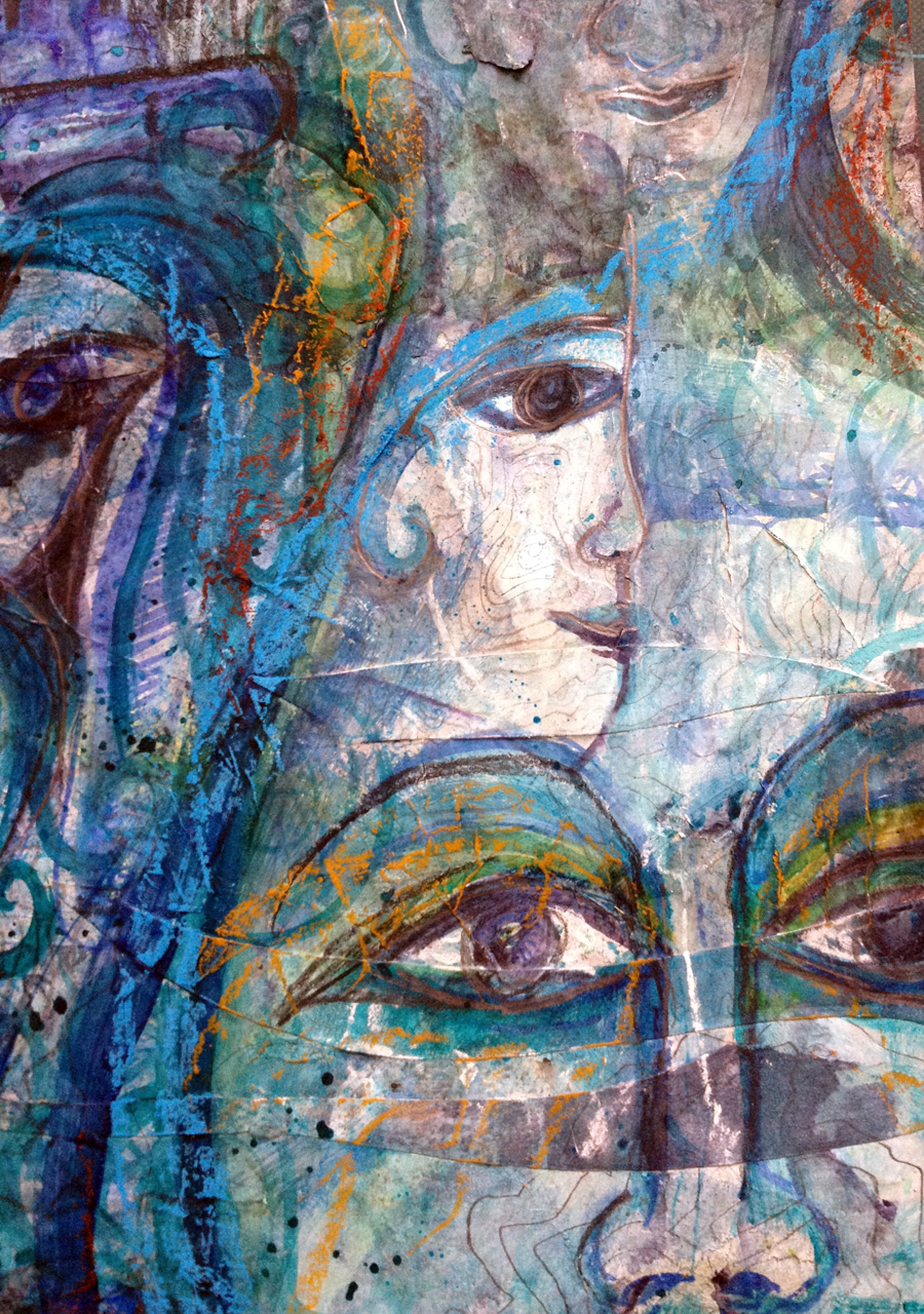 The two Water paintings have been progressing along since I last showed you. The biggest development has been that they are now populated with deities.