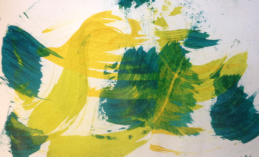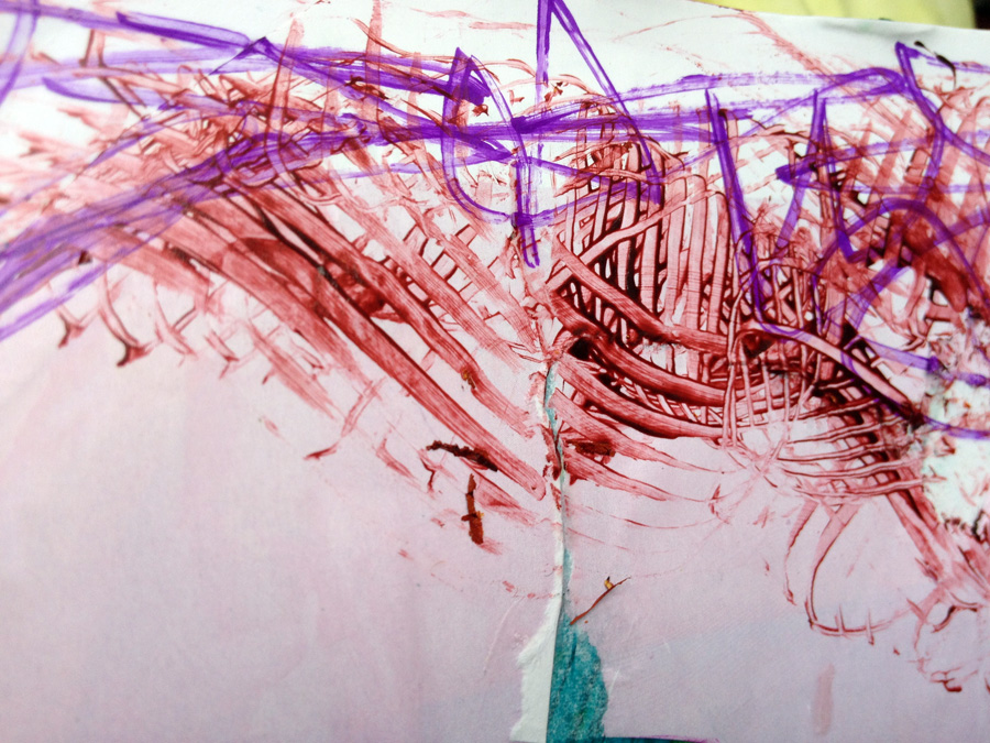 these folks will know this old trick: Squash that inky stencil between future pages of the book in which you’re playing and get the two-folded benefits of not wasting a drop of delicious colour and planting the seed for a creation yet to be born. That’s where this page began: