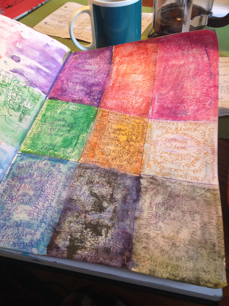 So I left that part of my brain running round with all the I don’t know what’s going to happen while the rest of me got down to drawing the boxes, writing the words, colouring the colours, and accepting it will probably turn into something, even if I don’t know what (yet).