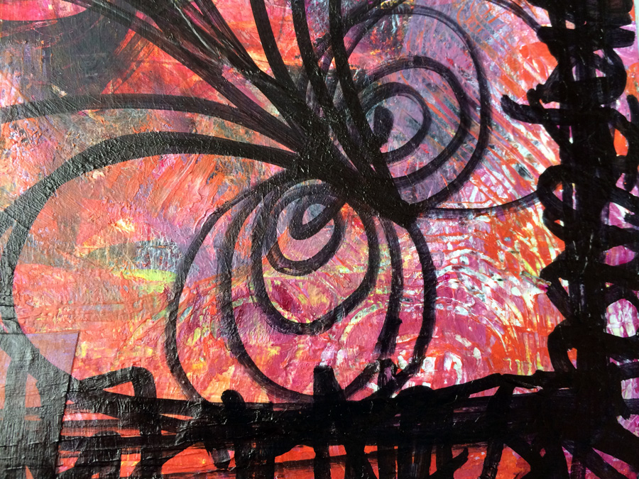 First was the simplest – I really like how the wrinkles in the tissue form this intricate pattern like tree roots – so it was important I set one aside as finished already: don’t change this! I just neatened up a couple of edges and that was that.