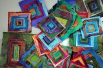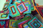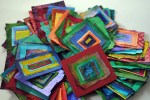 Fast forward another 10 years or so: We decide to re-incarnate/up-cycle said quilt into covers for floor cushions. Some long while after this they ended up in that limbo of ‘waiting for next idea’ space. The ragbag. The months of scavanging fabric, sorting and choosing, cutting into squares, sneezing from the fluff were so long past, but still fresh enough that we couldn’t totally let go.