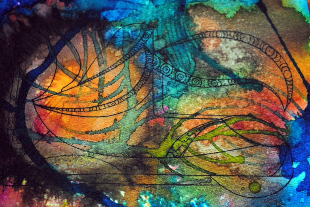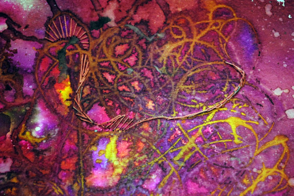 For this week’s experiments I doodled about with a stitched zigzag pattern (white thread on white paper – because that was easier than rummaging for the colors I wanted. Plus it’s fun to paint.)