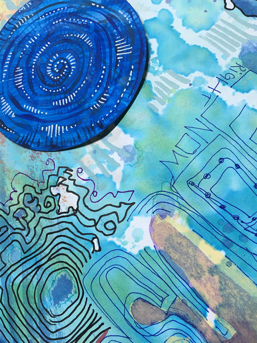 This first Series is titled Inner Space and consists of 15 small watercolor & collage paintings mounted as art cards, and will be up in my Etsy shop in October. Hop on my mailing list to be first to know more!